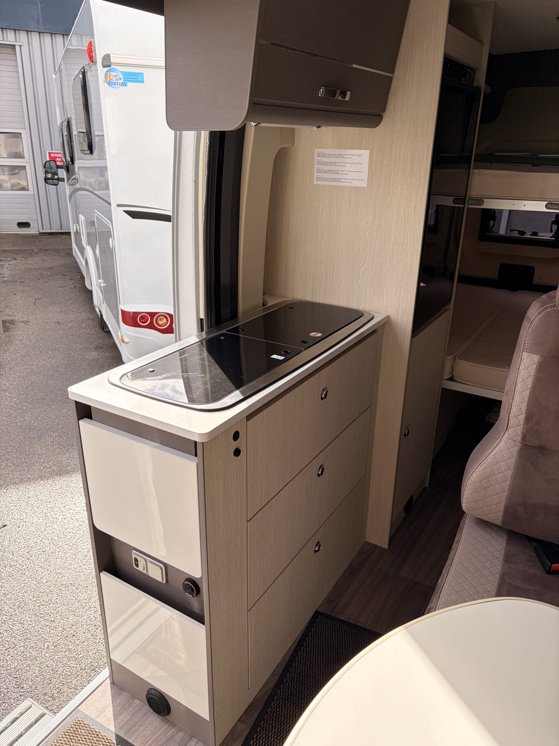 Rail de table sur meuble de cuisine pour manger dehors